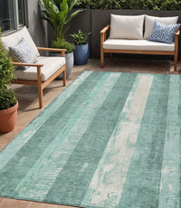 5' X 8' Pale Aqua And Teal Blue Striped Washable Indoor Outdoor Area Rug