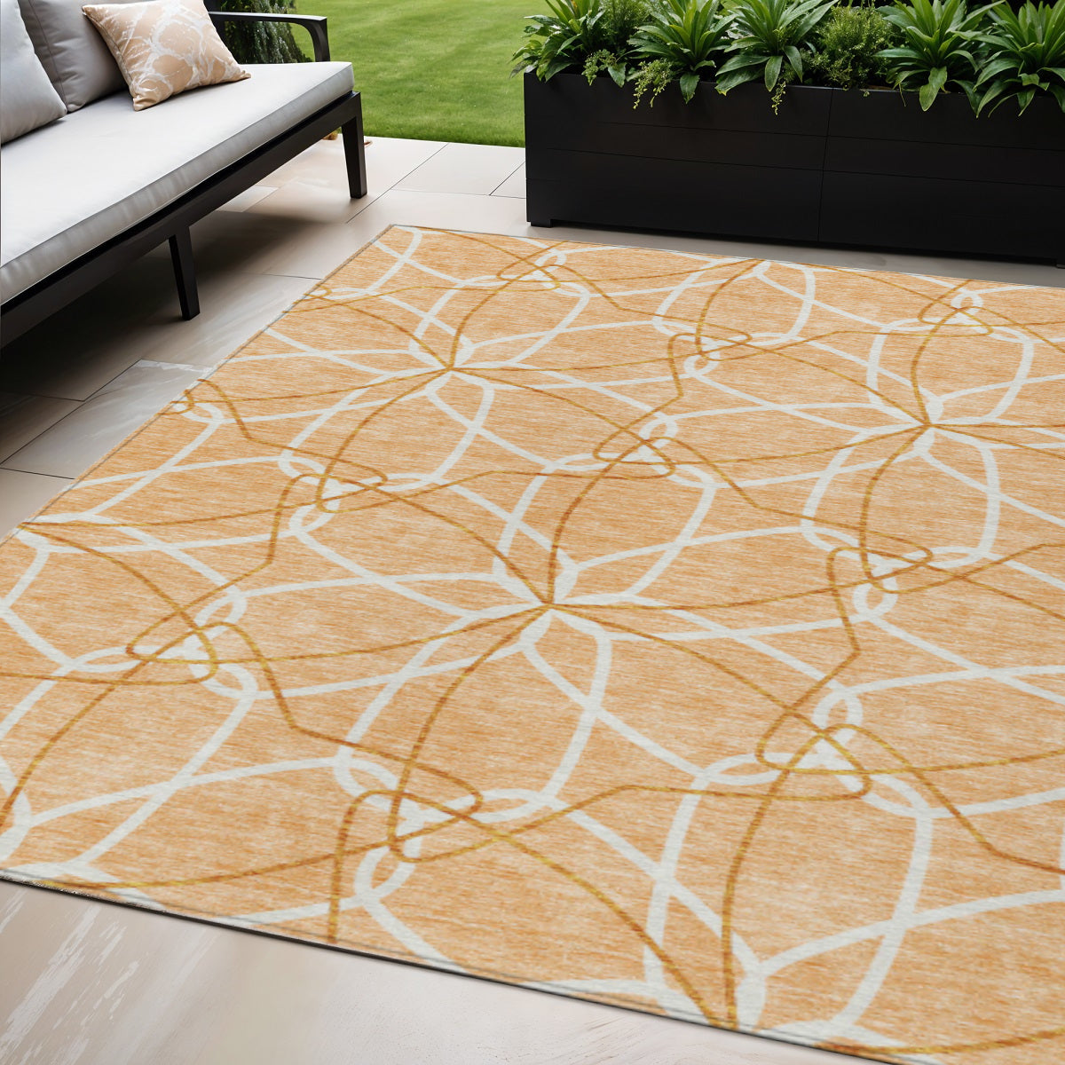 This 5-foot x 8-foot peach and ivory geometric washable indoor outdoor area rug, is a great way to add warmth to a room. This rectangle shaped rug features a geometric design that will work well both indoors or out. A classic shape marries with good looking design for your living room, hall, bedroom, porch, patio, or poolside. Ideal for outdoor spaces or high traffic areas with kids and pets, this rug is made from heavy duty polyester that is stain resistant to help repel water, dirt, and stains. Versatile in use, durable, and easy to maintain, this rug is an ideal solution to add a decorative and inviting touch to your indoor or outdoor space. 60-inch h x 90-inch w x 0.19-inch d.