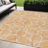 5' X 8' Peach And Ivory Geometric Washable Indoor Outdoor Area Rug