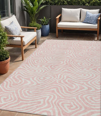 5' X 8' Pink And Gray Abstract Washable Indoor Outdoor Area Rug