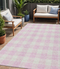 5' X 8' Pink And Gray Plaid Washable Indoor Outdoor Area Rug