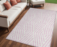 5' X 8' Pink And White Geometric Washable Non Skid Indoor Outdoor Area Rug