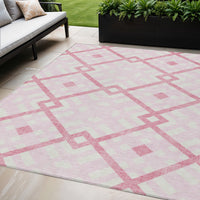 5' X 8' Pink Blush And Ivory Geometric Washable Indoor Outdoor Area Rug