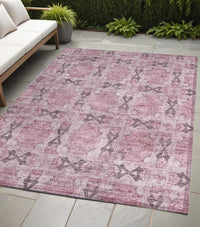 5' X 8' Pink Floral Medallion Washable Non Skid Indoor Outdoor Area Rug