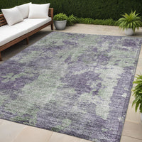 5' X 8' Purple And Green Abstract Washable Non Skid Indoor Outdoor Area Rug