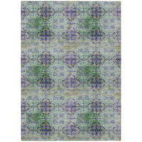 5' X 8' Purple And Green Floral Medallion Washable Non Skid Indoor Outdoor Area Rug