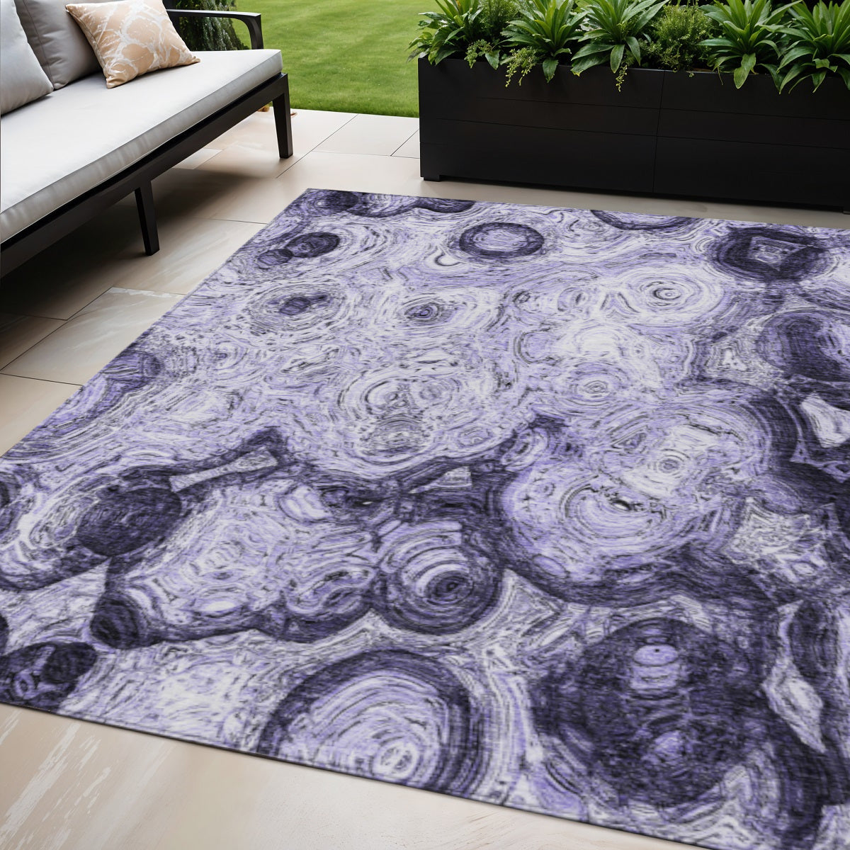 5' X 8' Purple And Lavender Abstract Washable Indoor Outdoor Area Rug
