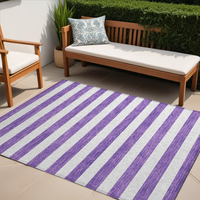 5' X 8' Purple And White Striped Washable Non Skid Indoor Outdoor Area Rug