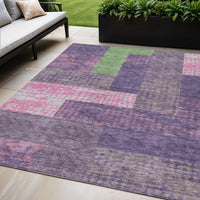 5' X 8' Purple Green And Pink Geometric Washable Indoor Outdoor Area Rug