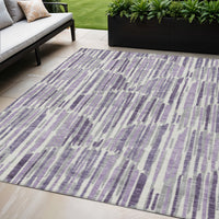 5' X 8' Purple Ivory And Lavender Abstract Washable Indoor Outdoor Area Rug