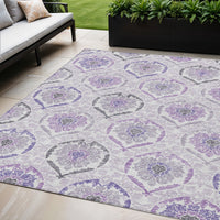 5' X 8' Purple Lavender And Gray Medallion Washable Indoor Outdoor Area Rug