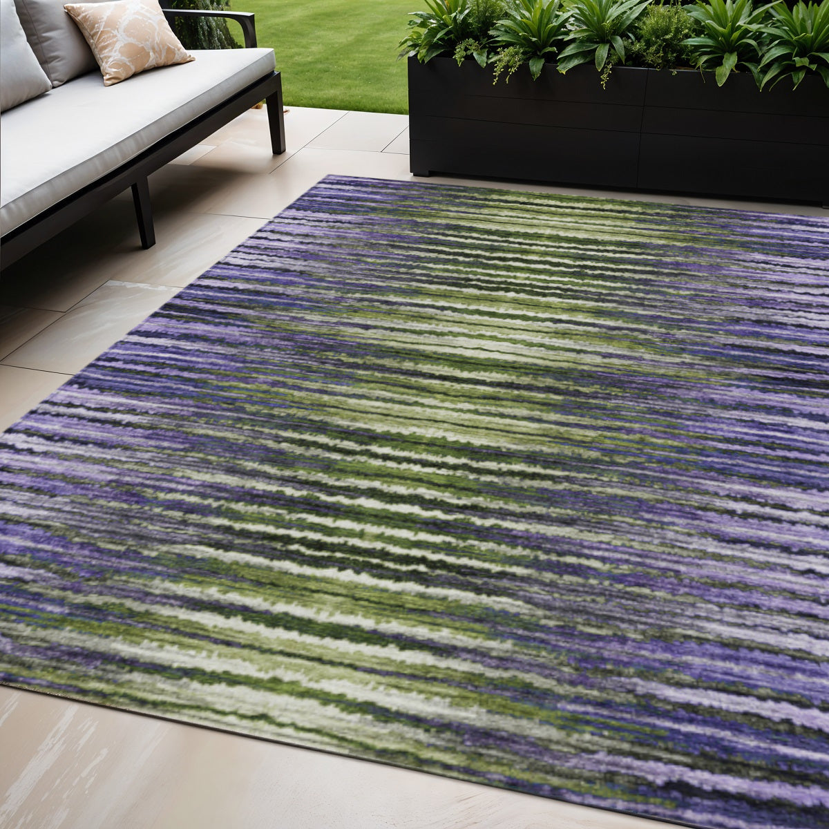 5' X 8' Purple Lilac And Lavender Striped Washable Indoor Outdoor Area Rug