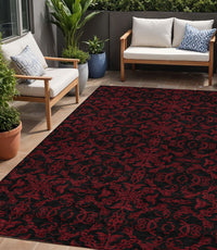 5' X 8' Red And Black Medallion Washable Indoor Outdoor Area Rug