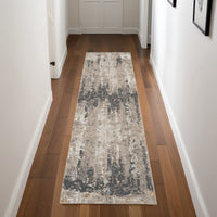 Add some artistry to your room with this 8-foot cream black and gray abstract runner rug. Built to last, this rug crafted from polypropylene and polyester blend fibers is known for its durability and long lasting appeal. Rugs are a great way to showcase your style, hide imperfections, warm your home and reduce noise. This rectangular shaped rug features a abstract design that will add a functional and decorative accent to your space. This modern styled runners makes a great accent for the hallway, in front of cabinets, in the laundry room, or any other space you need a narrow and long rug. 26-inch h x 90-inch w x 0.38-inch d