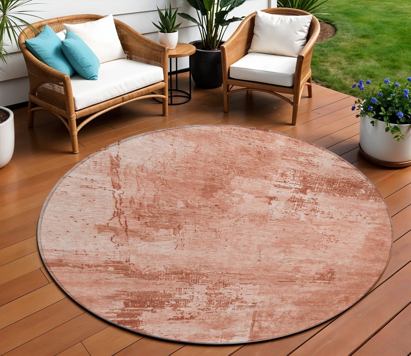 Add some artistry to your room with this 8-foot crimson and ivory round abstract washable indoor outdoor area rug. This geometric round shaped rug features a abstract pattern in crimson and ivory that combines a good looking print with a unique and updated shape. The mix of shape, color, and design gives this rug refreshing visual interest. Ideal for outdoor spaces or high traffic areas with kids and pets, this rug is made from heavy duty polyester that is stain resistant to help repel water, dirt, and stains. Versatile in use, durable, and easy to maintain, this rug is an ideal solution to add a decorative and inviting touch to your indoor or outdoor space. 96-inch h x 96-inch w x 0.19-inch d.