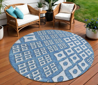 8' Denim Blue And Light Blue Round Geometric Washable Indoor Outdoor Area Rug