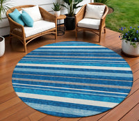 8' Denim Blue Gray And Ivory Round Striped Washable Indoor Outdoor Area Rug