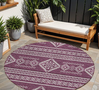 8' Eggplant And Ivory Round Southwestern Washable Indoor Outdoor Area Rug