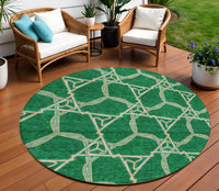 8' Emerald And Beige Round Geometric Washable Indoor Outdoor Area Rug
