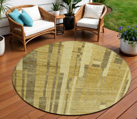 8' Gold And Dark Brown Round Striped Washable Indoor Outdoor Area Rug