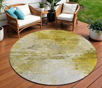 8' Gold Beige And Wheat Round Abstract Washable Indoor Outdoor Area Rug