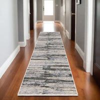 Add great coloration and comfortable texture to your space with this 8-foot gray abstract power loom runner rug with fringe. This runner shaped rug features a abstract design in gray to give it visual interest. A classic shape marries with good looking design for your space the coloring of this rug adds a delightfully neutral tone to your home and will easily match with most any decor. Ideal for spaces with kids and pets, this rug is stain resistant to help repel stains and spilled liquids. Tassel ends bring a timeless and fashionable look to your interior. Place this area rug against a hardwood or tile floor and it will enliven your living space with style and sophistication. 26.77-inch H x 92.52-inch W x 0.24-inch D