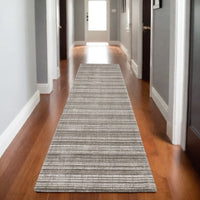 Add great coloration and comfortable texture to your space with this 8-foot gray striped hand tufted runner rug. This runner shaped rug features a striped design in gray to give it visual interest. A classic shape marries with good looking design for your space the coloring of this rug adds a delightfully neutral tone to your home and will easily match with most any decor. Area rugs help to give warmth and sense of home to your space. 29.92-inch H x 95.67-inch W x 0.47-inch D