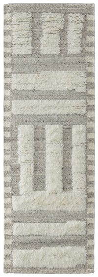 8' Gray and Ivory Wool Geometric Hand Woven Runner Rug