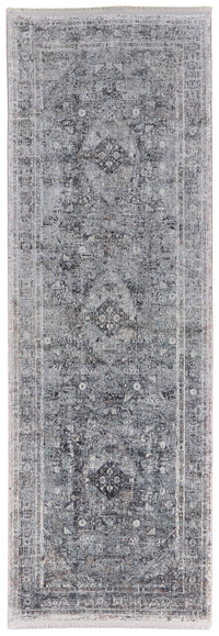 This 8-foot gray and silver oriental power loom worn faded runner rug, is a great way to add warmth to a room. This runner shaped rug features a oriental design in gray and silver to give it visual interest. A classic shape marries with good looking design for your space place this area rug against a hardwood or tile floor and it will enliven your living space with style and sophistication. 32-inch H x 96-inch W x 0.22-inch D