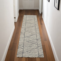 Set an inviting tone in your space with this 8-foot gray and white wool abstract runner rug. Rugs are a great way to showcase your style, hide imperfections, warm your home and reduce noise. This rectangular shaped rug features a abstract design that will add a functional and decorative accent to your space. This modern styled runners makes a great accent for the hallway, in front of cabinets, in the laundry room, or any other space you need a narrow and long rug. 27-inch h x 90-inch w x 0.6-inch d.