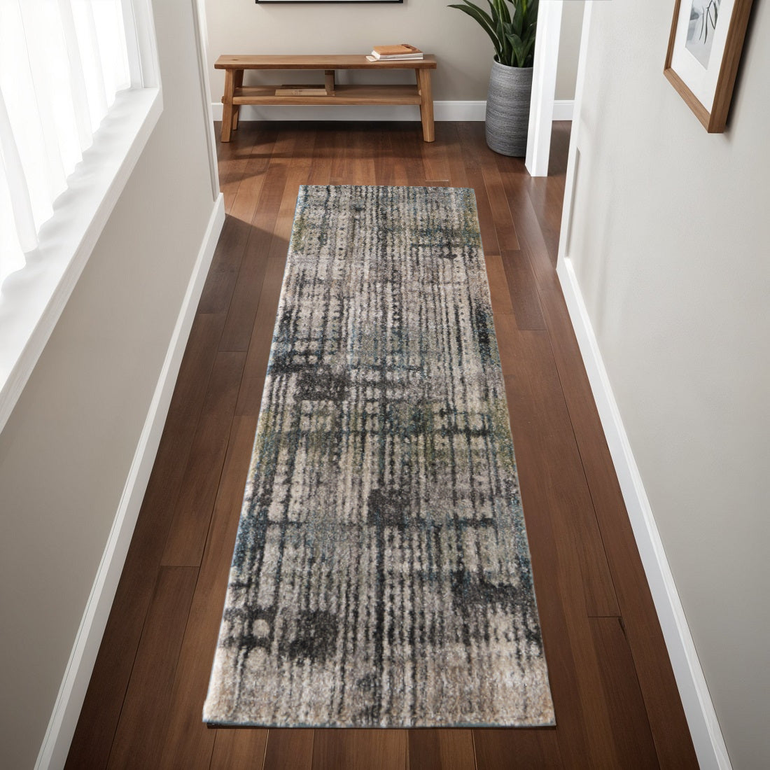 This 8-foot gray black and ivory abstract distressed runner rug, is a great way to add warmth to a room. Ideal for spaces with kids and pets, this rug is stain resistant to help repel dirt and spilled liquids. Built to last, this rug crafted from polypropylene blend fibers is known for its durability and long lasting appeal. Rugs are a great way to showcase your style, hide imperfections, warm your home and reduce noise. This rectangular shaped rug features a abstract design that will add a functional and decorative accent to your space. This industrial style runner makes a great accent for the hallway, in front of cabinets, in the laundry room, or any other space you need a narrow and long rug. 30-inch h x 87-inch w x 1-inch d.