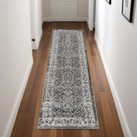 This 8-foot gray floral power loom runner rug, is a great way to add warmth to a room. This runner shaped rug features a floral design in gray to give it visual interest. A classic shape marries with good looking design for your space the coloring of this rug adds a delightfully neutral tone to your home and will easily match with most any decor. Place this area rug against a hardwood or tile floor and it will enliven your living space with style and sophistication. 26-inch H x 90-inch W x 0.71-inch D