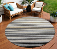 8' Gray Ivory And Beige Round Striped Washable Indoor Outdoor Area Rug