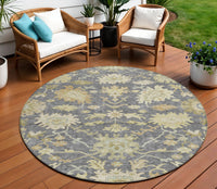 8' Gray Ivory And Green Round Floral Washable Indoor Outdoor Area Rug