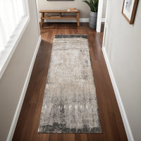8' Gray Ivory And Taupe Abstract Distressed Runner Rug