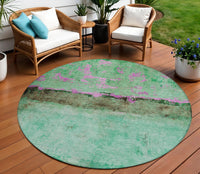 8' Green And Pink Round Abstract Washable Indoor Outdoor Area Rug
