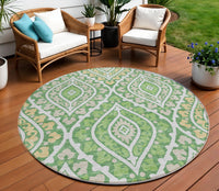 8' Green Beige And Ivory Round Floral Washable Indoor Outdoor Area Rug