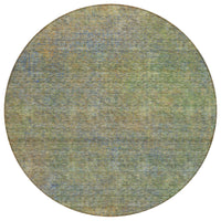8' Green Gold And Charcoal Round Abstract Washable Indoor Outdoor Area Rug