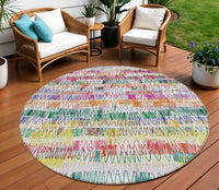 8' Green Ivory And Purple Round Striped Washable Indoor Outdoor Area Rug