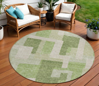 8' Green Sage And Beige Round Geometric Washable Indoor Outdoor Area Rug