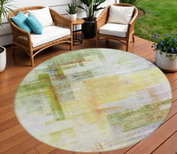 8' Green Yellow And Purple Round Abstract Washable Indoor Outdoor Area Rug