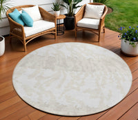 8' Ivory And Beige Round Animal Print Washable Indoor Outdoor Area Rug