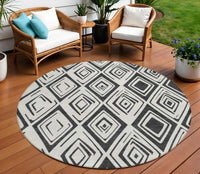 8' Ivory And Black Round Geometric Washable Indoor Outdoor Area Rug