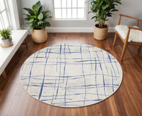 This 8-foot ivory and blue abstract distressed round rug, is a great way to add warmth to a room. Ideal for spaces with kids and pets, this rug is stain resistant to help repel dirt and spilled liquids. Built to last, this rug crafted from polypropylene fibers is known for its durability and long lasting appeal. Rugs are a great way to showcase your style, hide imperfections, warm your home and reduce noise. This geometric round shaped rug features a abstract pattern in ivory and blue that combines a good looking print with a unique and updated shape. The mix of shape, color, and design gives this rug refreshing visual interest. This larger sized, modern styled rug is ready to create a focal point or statement piece in your room. 96-inch h x 96-inch w x 0.39-inch d.
