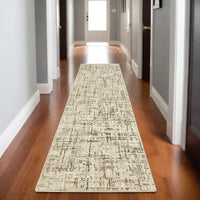 Add some artistry to your room with this 8-foot ivory abstract power loom runner rug. This runner shaped rug features a abstract design in ivory to give it visual interest. A classic shape marries with good looking design for your space the coloring of this rug adds a delightfully neutral tone to your home and will easily match with most any decor. Ideal for spaces with kids and pets, this rug is stain resistant to help repel stains and spilled liquids. Area rugs help to give warmth and sense of home to your space. 26.77-inch H x 92.52-inch W x 0.39-inch D