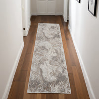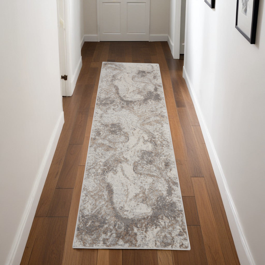 Add great coloration and comfortable texture to your space with this 8-foot ivory and gray abstract non skid runner rug. Ideal for spaces with kids and pets, this rug is stain resistant to help repel dirt and spilled liquids. Built to last, this rug crafted from polypropylene fibers is known for its durability and long lasting appeal. Rugs are a great way to showcase your style, hide imperfections, warm your home and reduce noise. This rectangular shaped rug features a abstract design that will add a functional and decorative accent to your space. This modern styled runners makes a great accent for the hallway, in front of cabinets, in the laundry room, or any other space you need a narrow and long rug. 27-inch h x 90-inch w x 0.25-inch d