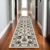 This 8-foot ivory oriental power loom runner rug, is a great way to add warmth to a room. This runner shaped rug features a oriental design in ivory to give it visual interest. A classic shape marries with good looking design for your space the coloring of this rug adds a delightfully neutral tone to your home and will easily match with most any decor. Ideal for spaces with kids and pets, this rug is stain resistant to help repel stains and spilled liquids. Area rugs help to give warmth and sense of home to your space. 26.77-inch H x 90.55-inch W x 0.39-inch D
