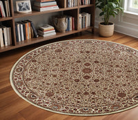 Add great coloration and comfortable texture to your space with this 8-foot ivory green and red oriental round rug. Ideal for spaces with kids and pets, this rug is stain resistant to help repel dirt and spilled liquids. Built to last, this rug crafted from polypropylene fibers is known for its durability and long lasting appeal. Rugs are a great way to showcase your style, hide imperfections, warm your home and reduce noise. This geometric round shaped rug features a oriental pattern in ivory, green, and red that combines a good looking print with a unique and updated shape. The mix of shape, color, and design gives this rug refreshing visual interest. This larger sized, traditional styled rug is ready to create a focal point or statement piece in your room. 94.49-inch h x 94.49-inch w x 0.43-inch d.