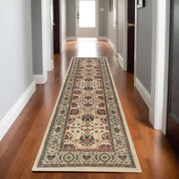 Add great coloration and comfortable texture to your space with this 8-foot ivory floral power loom runner rug. This runner shaped rug features a floral design in ivory to give it visual interest. A classic shape marries with good looking design for your space the coloring of this rug adds a delightfully neutral tone to your home and will easily match with most any decor. Ideal for spaces with kids and pets, this rug is stain resistant to help repel stains and spilled liquids. Place this area rug against a hardwood or tile floor and it will enliven your living space with style and sophistication. 26.77-inch H x 92.52-inch W x 0.43-inch D