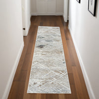 8' Ivory Black and Gray Abstract Non Skid Runner Rug